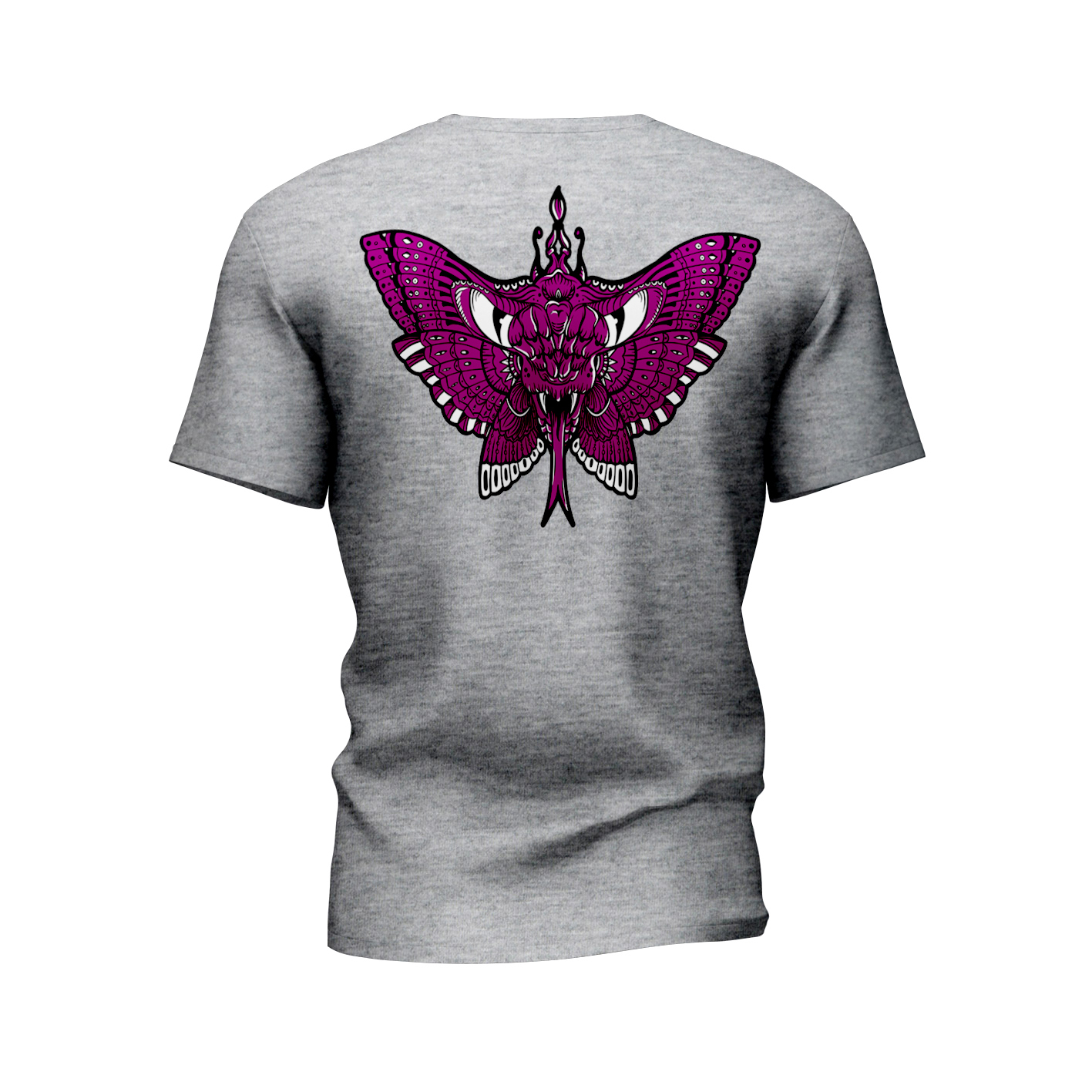 Estampa nas costas, com uma borboleta - ser grandioso em temos de beleza -, misturado com uma serpente - ser assustador por natureza. O medo, em certa medida, nos move. E nos leva muitas das vezes, à lugares muito belos!