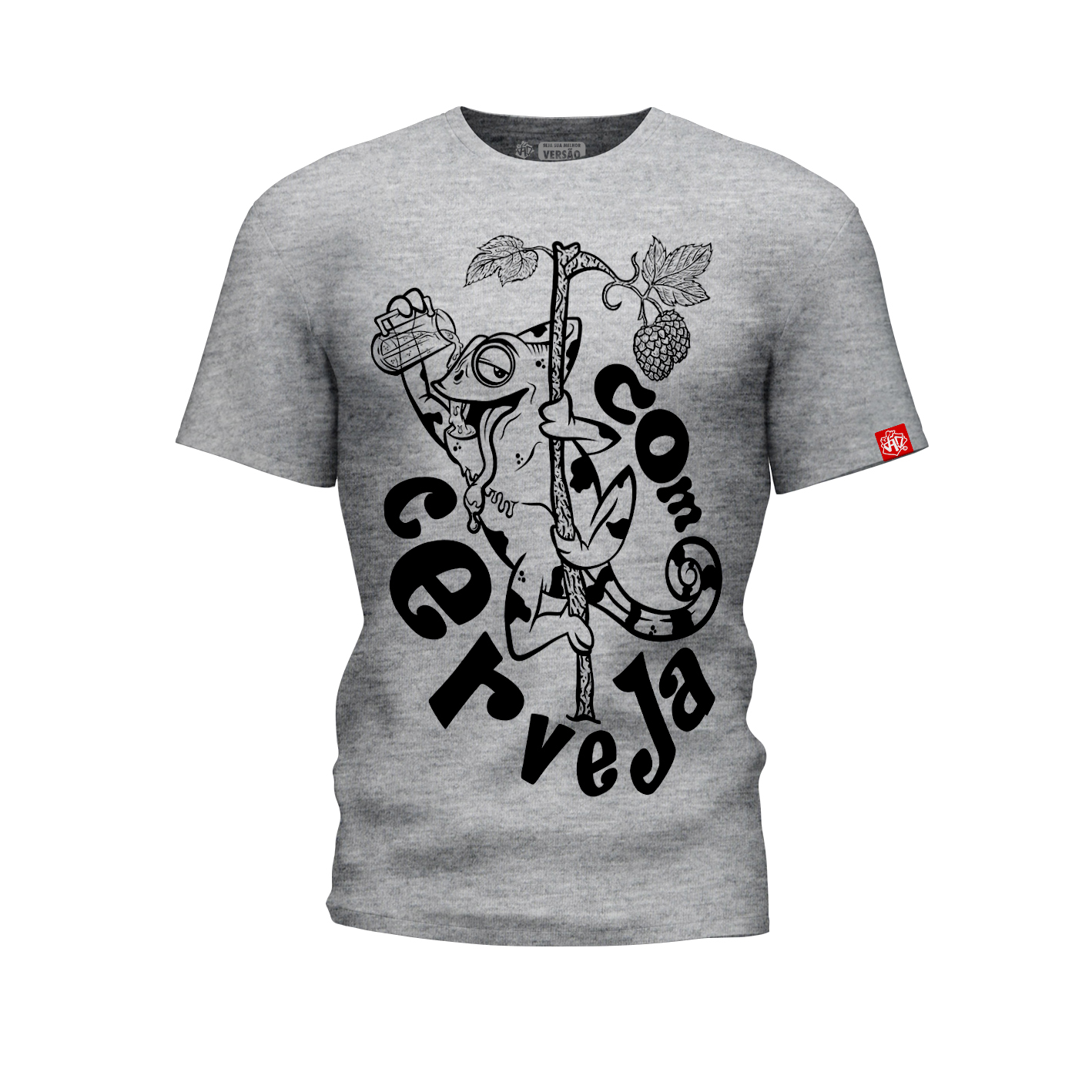 Estampa autoral, camaleão chapado de suco de cevadis!
